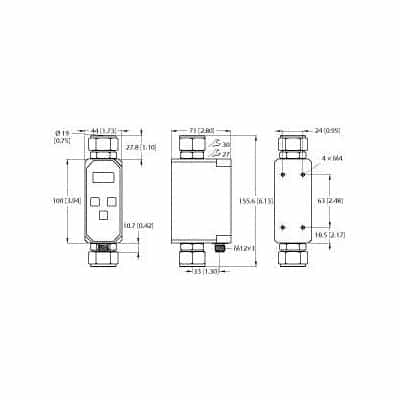 Turck FTCI-N3/4D19A4P-2ARX-H1160 Flow Sensor – Inline Sensor with Integrated Processor, Relay Output 24 VDC NO, Compact inline flow sensor, Calorimetric principle, Monitoring of flow rate, Monitoring of the medium temperature, For water/glycol mix, Parametrized via button, Protected by software code, 2 relay switching outputs, Switching outputs 24 VDC NO, Switchpoints freely adjustable, Operating range 10…100 l/min